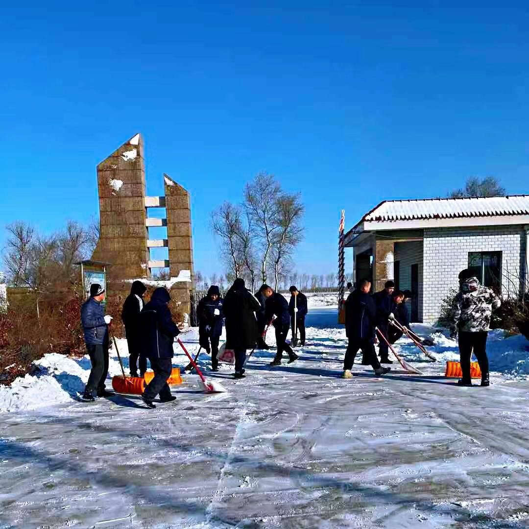 在王场长的带领下,大家不畏严寒,积极主动、相互配合、齐心协力,挥动着铁锹和笤帚对场区及升压站的积雪和结冰进行清扫,一点点地将积雪和冰层铲起集中堆放。尽管大家的脸都冻得通红,但手中的扫雪工具却不停地挥舞着,忙碌的身影构成了一道亮丽的风景线。在欢声笑语中一片片干净的场区和一条条畅通的大道呈现出来。